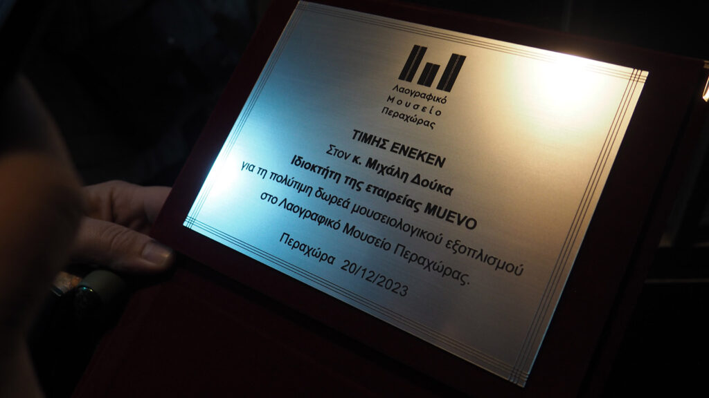 During the opening ceremony, MUEVO received an honorary praise for its wholehearted support to the Folk Art Museum of Perachora as well as its wider contribution to the field of culture in general.